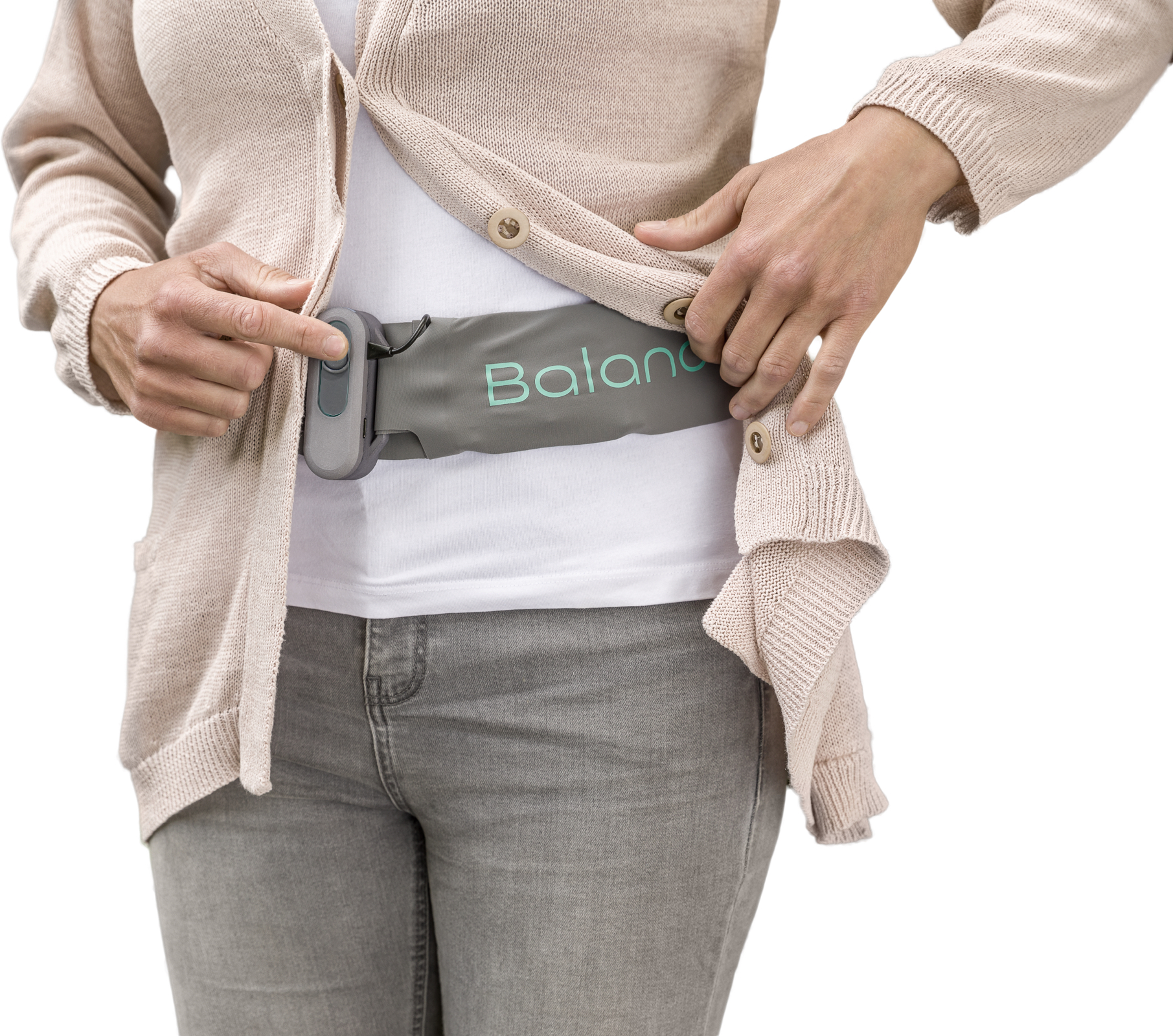 De BalanceBelt is een slimme, draagbare riem die real-time vibrotactiele feedback geeft op basis van de lichaamsbeweging en -kanteling van de gebruiker. Deze feedback wordt onbewust geïnterpreteerd, waardoor je veiliger en stabieler kunt bewegen.
